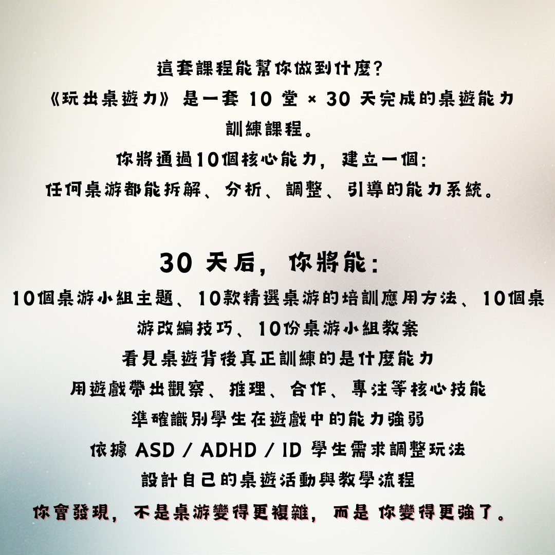 《玩出桌遊力|10款精選桌上遊戲》線上課程報名